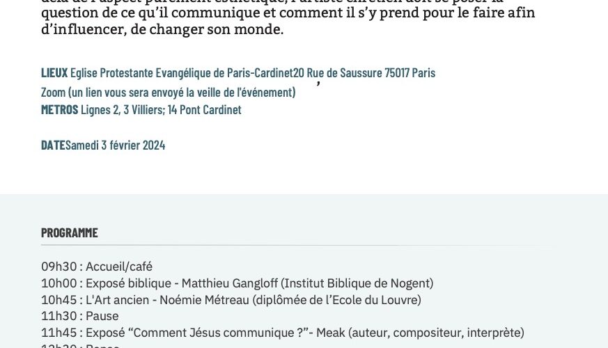 • Soirée de prière Réseau Enseignement et Education, 26/04/2024