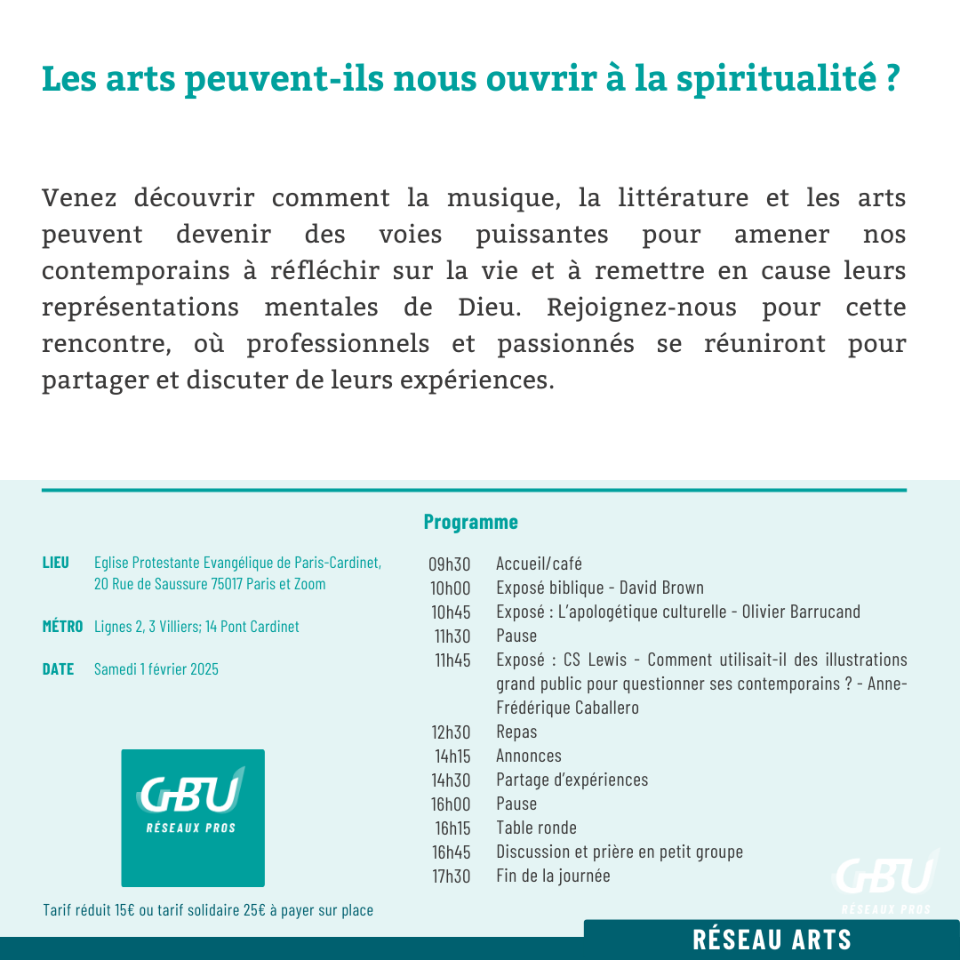 Journée Réseau Arts 2025 : Les arts peuvent-ils nous ouvrir à la spiritualité ? Inscrivez-vous Inscrivez-vous