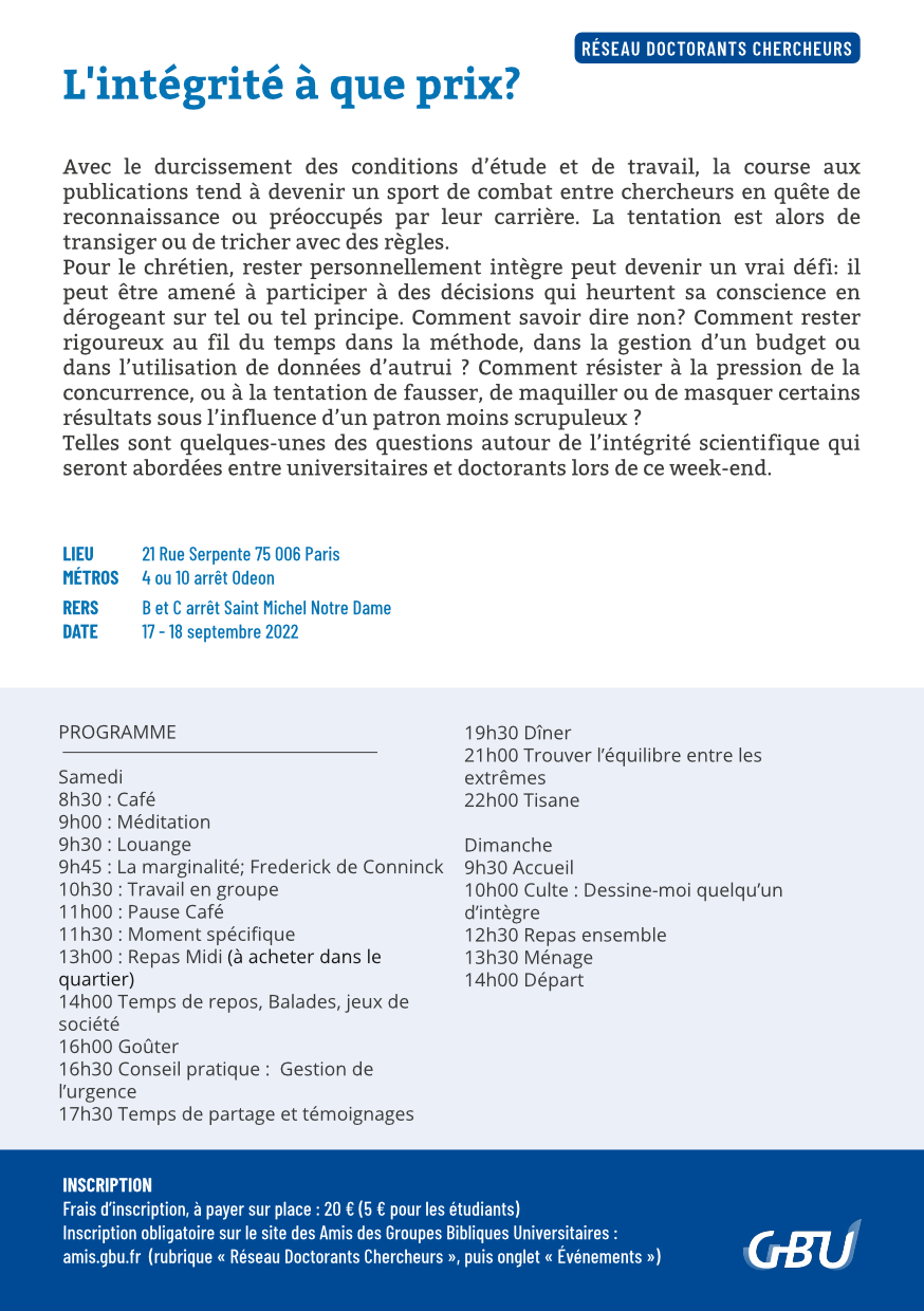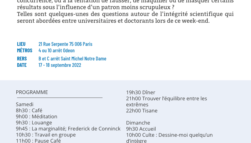 Week-end Doctorants 2022, Intégrité: à quel prix?